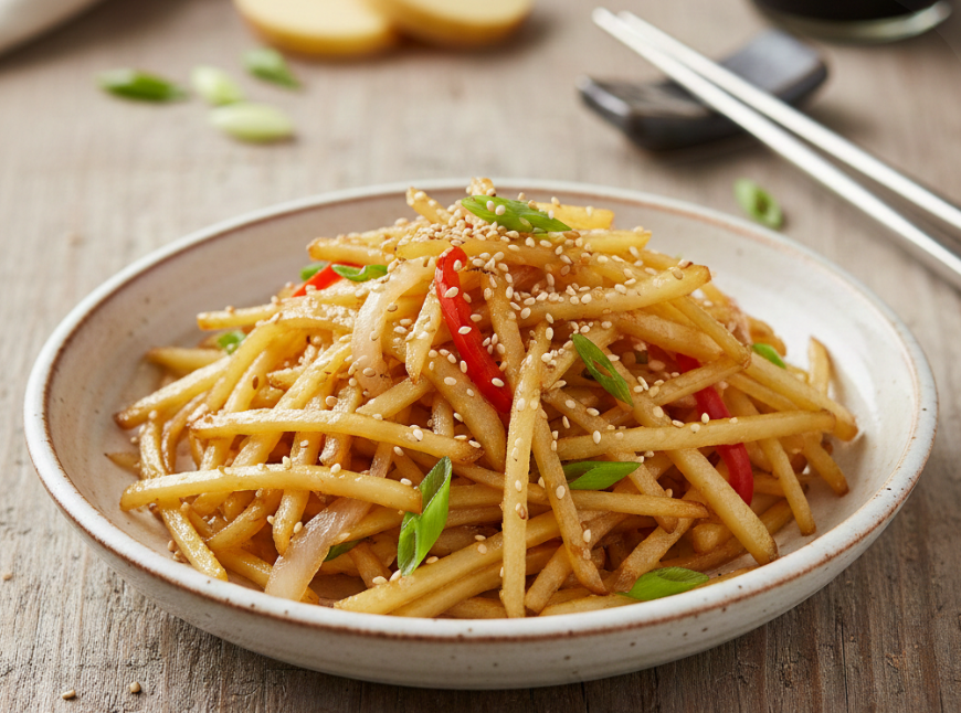 감자채볶음은 단순한 반찬처럼 보이지만 손질, 전분 제거, 팬 온도, 양념 타이밍 등 작은 요소 하나하나가 완성도를 좌우합니다. 위 레시피를 그대로 따라 한다면 누구나 아삭하고 고소한 감자채볶음을 만들 수 있습니다. 따뜻한 밥과 함께 가장 간단하게 즐길 수 있는 집밥 반찬으로 오늘 한 번 꼭 해보세요.